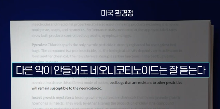 그러면서 이제 네오니코티노이드가 빈대 살충 효과 있는 것 알았으니까 미국처럼 사용 권장으로 바뀌게 될 것이라고 밝혀왔습니다.
