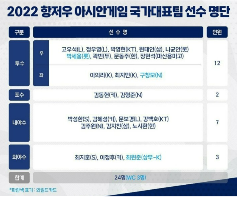 2022 제 19회 항저우 아시안게임 야구 - 국가대표 선수명단