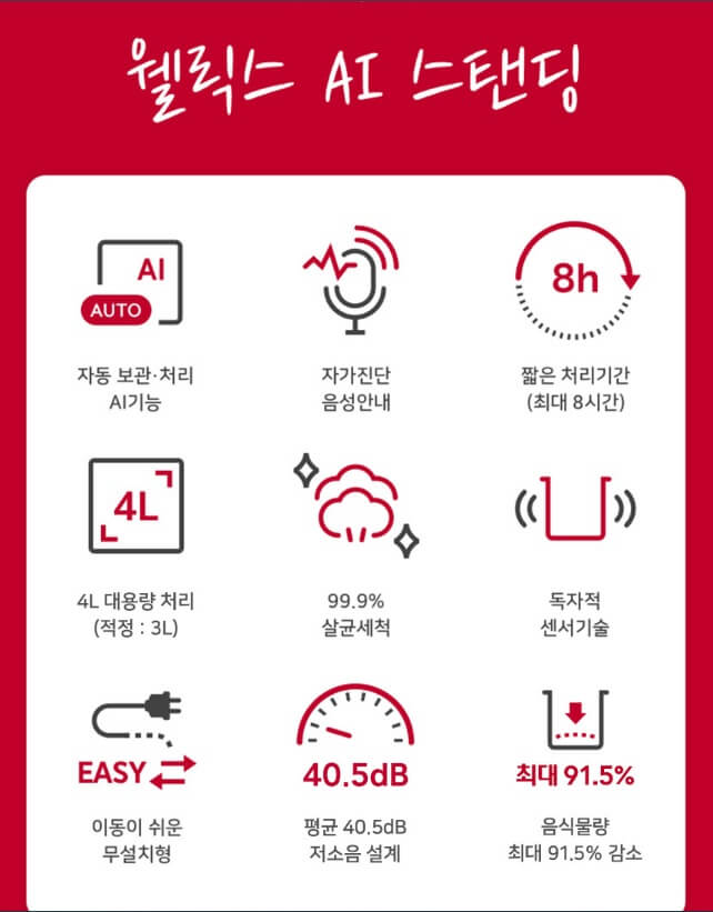 음식물처리기 추천 - 웰릭스 클린 AI 스탠딩 음식물처리기(CAN-400)