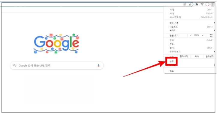1. 크롬을 켜면 아래와 같이 첫 화면 윗 상단에 점 세개가 보일거에요! 2. 점 세개를 누릅니다. |