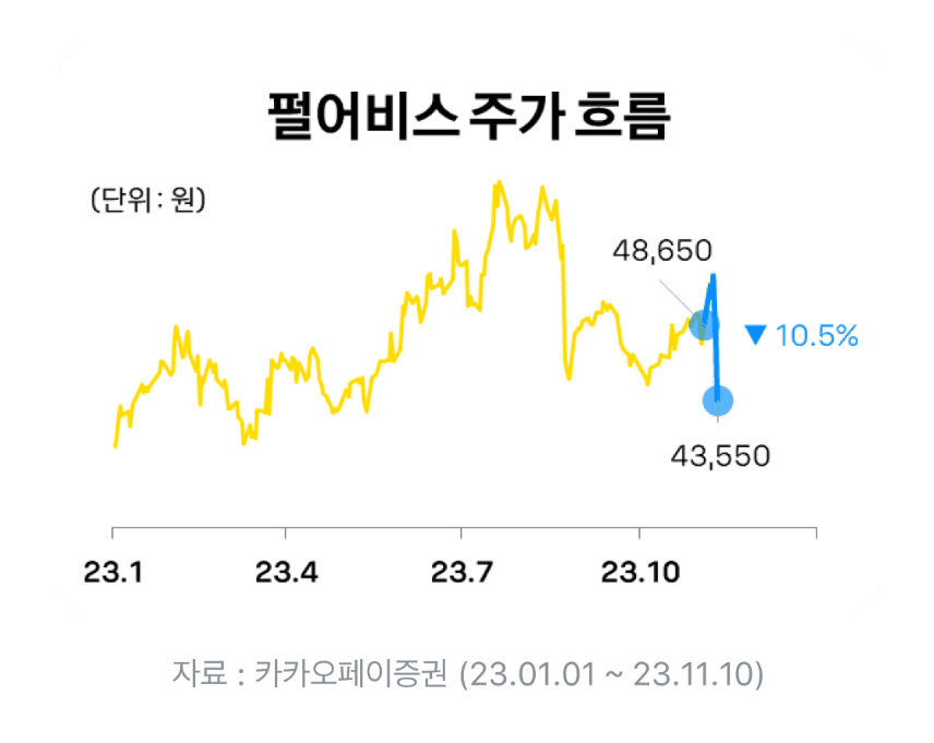 펄어비스 ▼10.5% (게임엔터테인먼트)