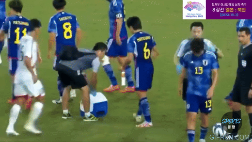 | 북한의 깡패 축구1 : 일본의 물 뺏어마시고 손찌검하는 북한선수 : 옐로우카드 받는 장면 |