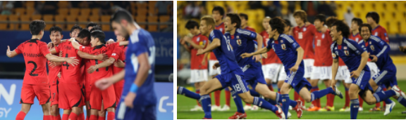 한국은 자카르타-팔렘방 아시안게임 때도 결승에서 한일전을 벌였었고, 당시 연장 승부 끝에 한국이 2-1로 일본을 꺾고 금메달을 차지한 전적이 있습니다.